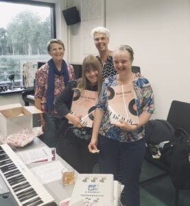 Blije gezichten bij De Notenkrakers en De Kleine Kracht. Direct na de zomervakantie mocht De Notenkrakers samen met De Kleine Kracht nieuwe muziekboeken in ontvangst